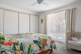 Three bedrooms, the main bathroom, a separate toilet and laundry are positioned on one side of the home. The main bedroom and an additional bathroom are located on the opposite side of the house.
