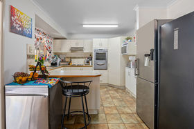 The kitchen is fitted with a double wall oven with separate grill, a four-burner electric cooktop and storage cabinetry. Split-system heating and cooling units are installed in the formal lounge and rumpus room.